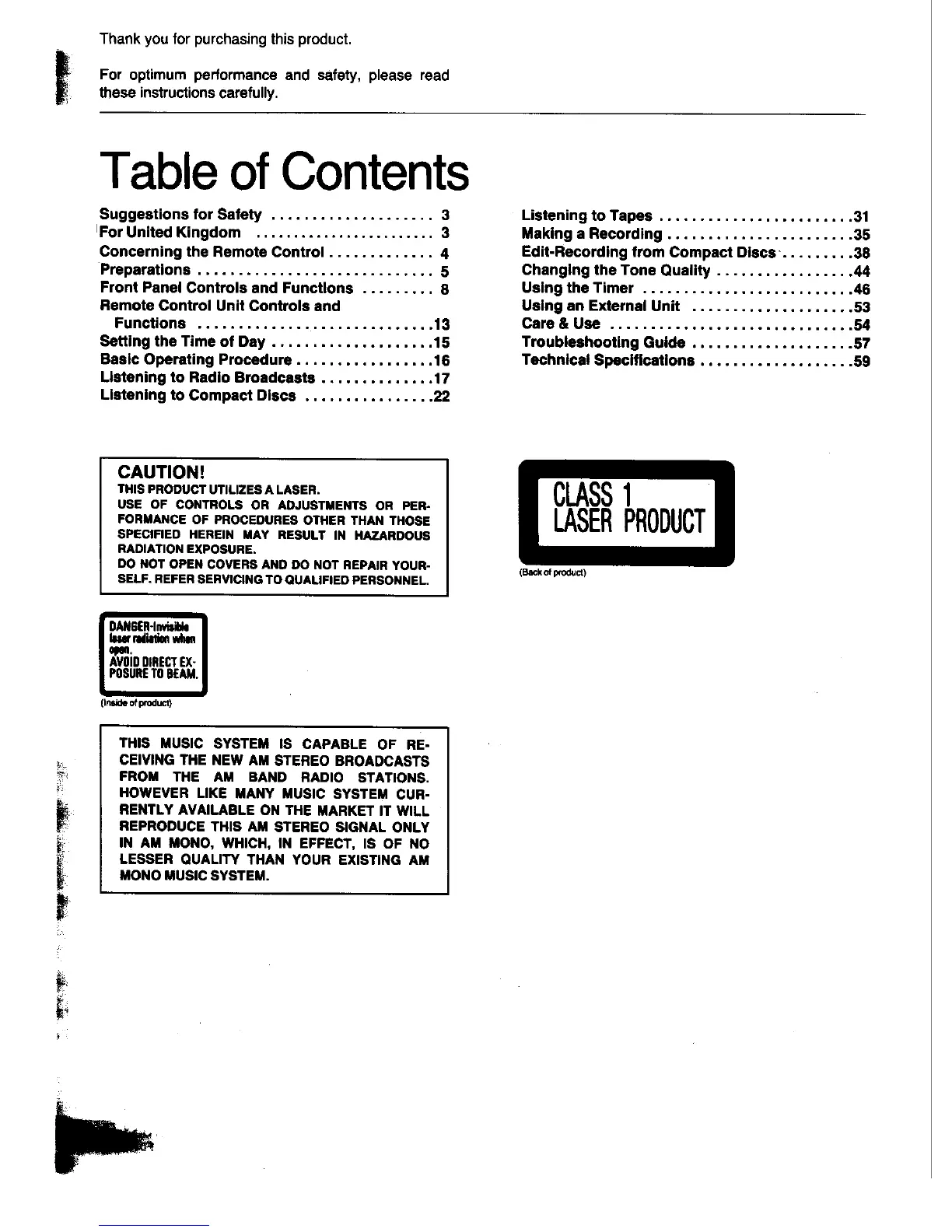 Panasonic SC-CH33 - Table of Contents