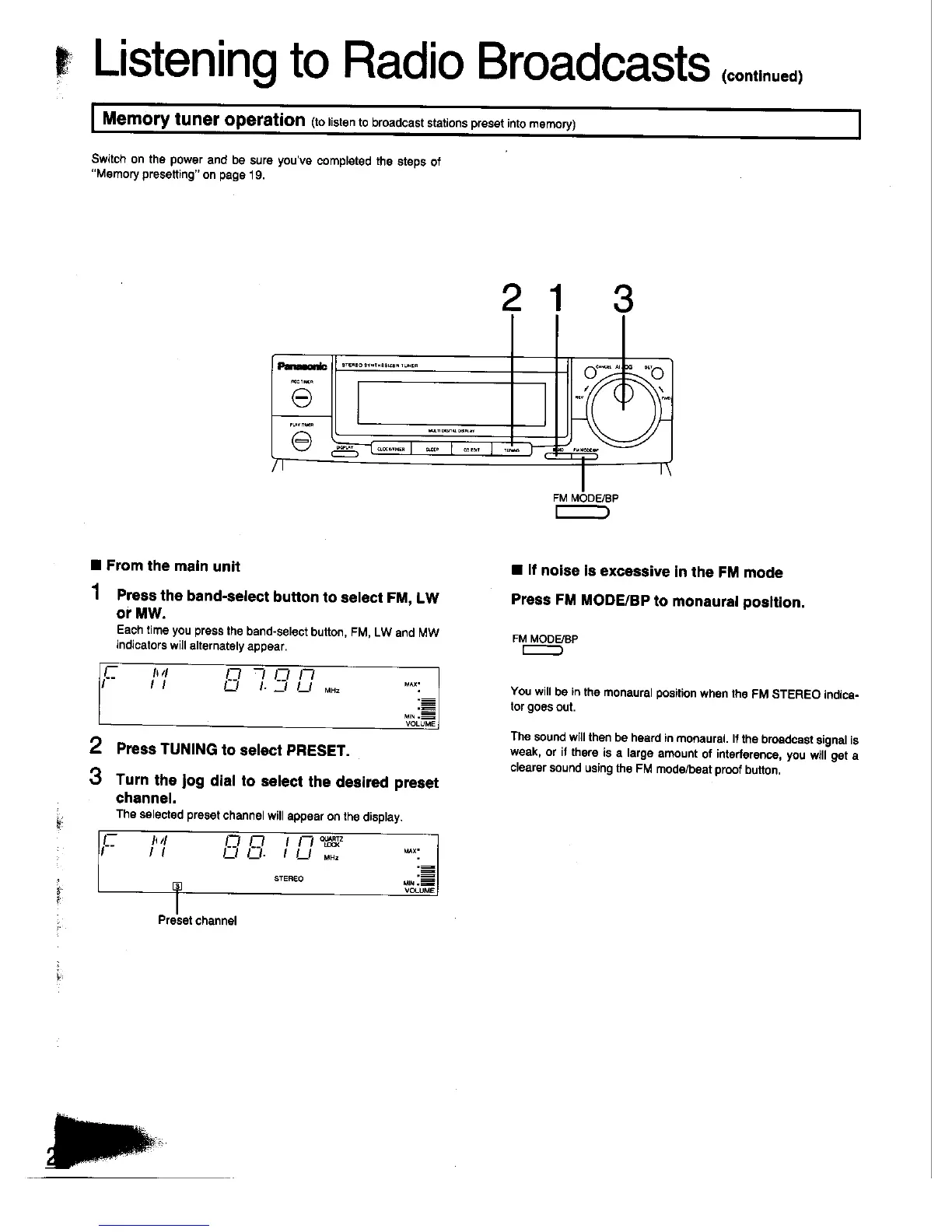 Panasonic SC-CH33 - Memory tuner operation