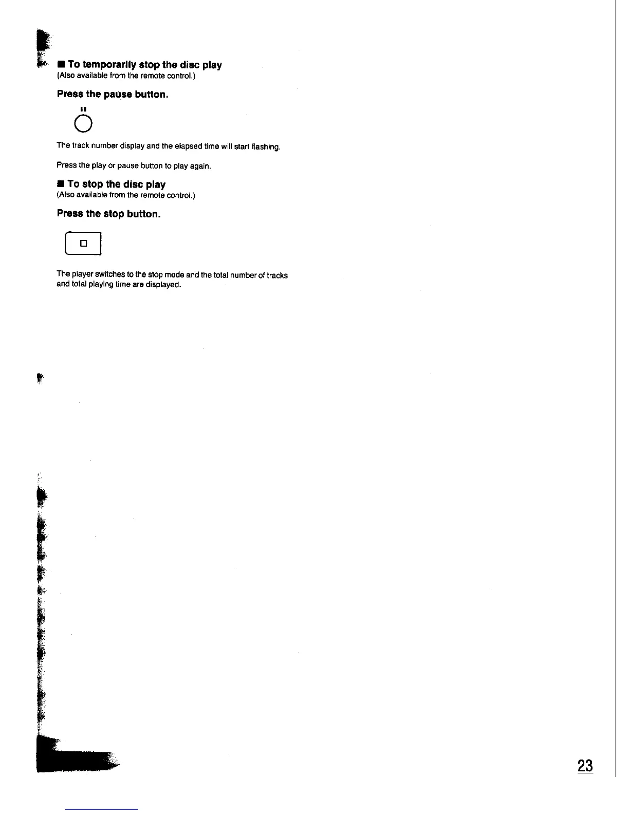 Panasonic SC-CH33 - To Temporary Stop the Disc Play; To Stop the Disc Play