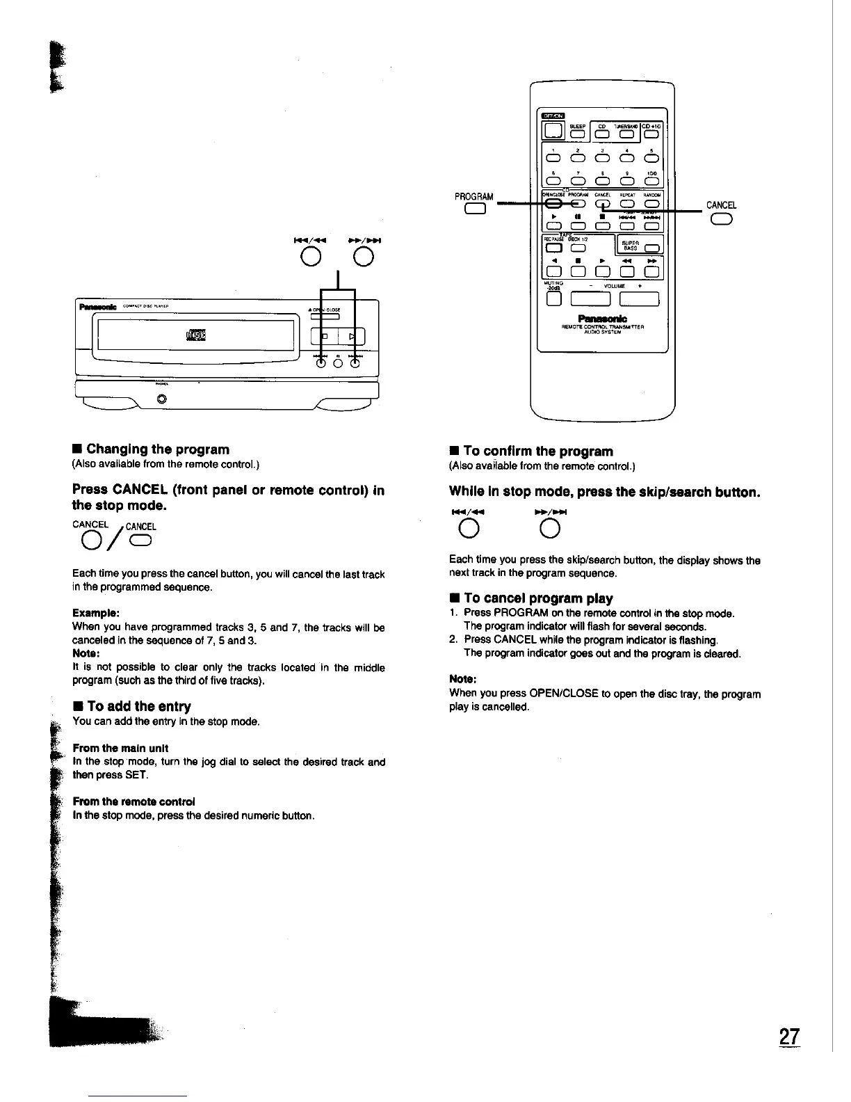 Panasonic SC-CH33 - Changing the Program; To Add the Entry; To Confirm the Program; To Cancel Program Play