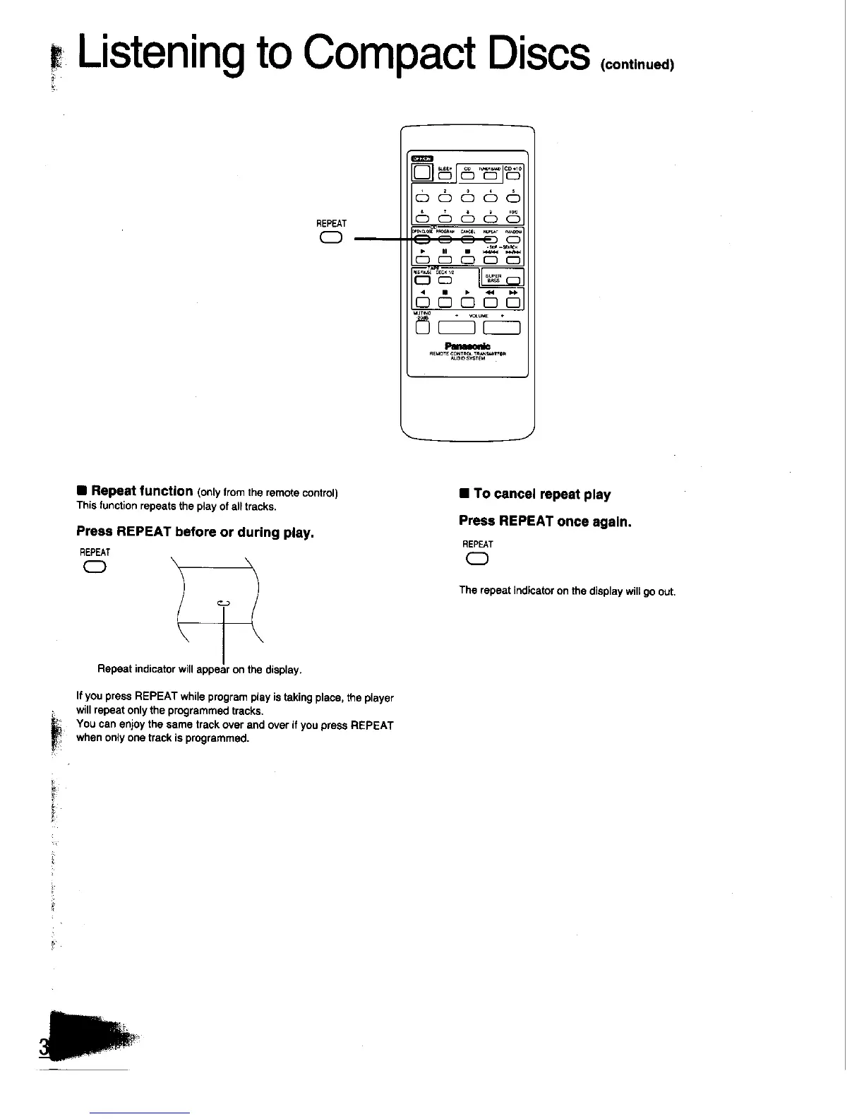 Panasonic SC-CH33 - Repeat Function; To Cancel Repeat Play