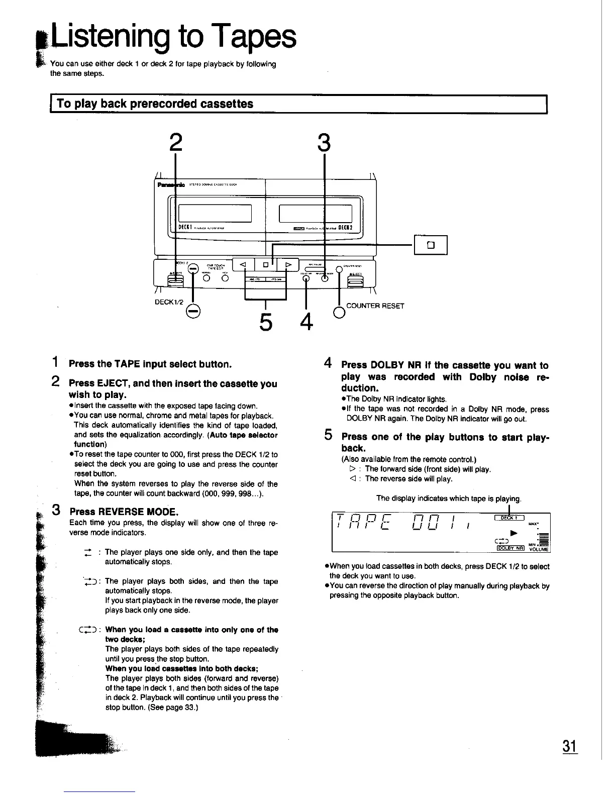 Panasonic SC-CH33 - Listening to Tapes; To play back prerecorded cassettes