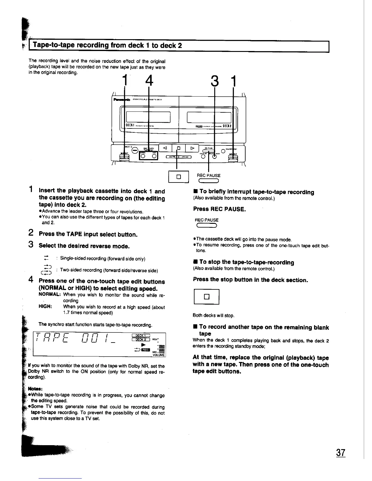 Panasonic SC-CH33 - Tape-to-tape recording from deck 1 to deck 2