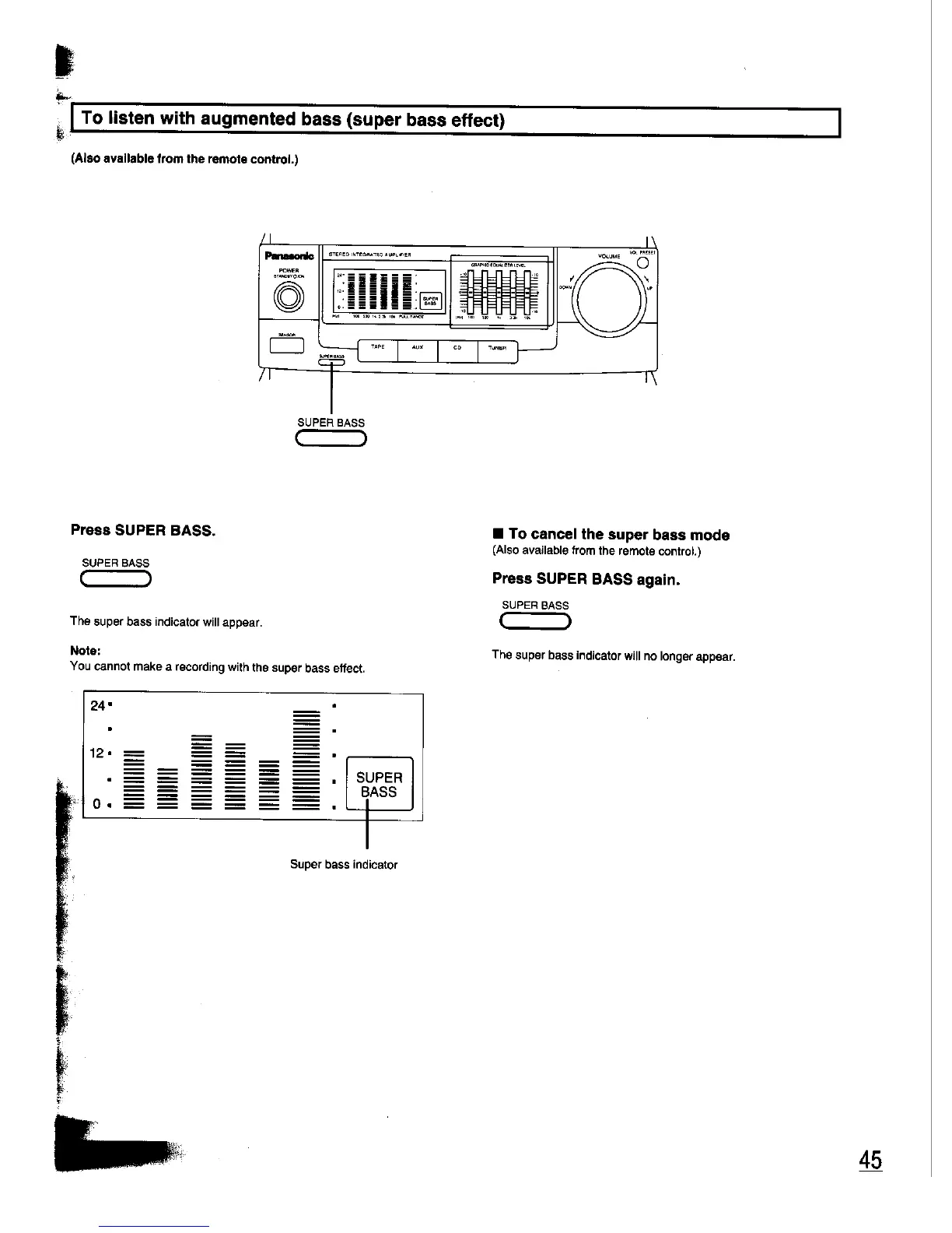 Panasonic SC-CH33 - To Listen with Augmented Bass (Super Bass Effect); To Cancel the Super Bass Mode