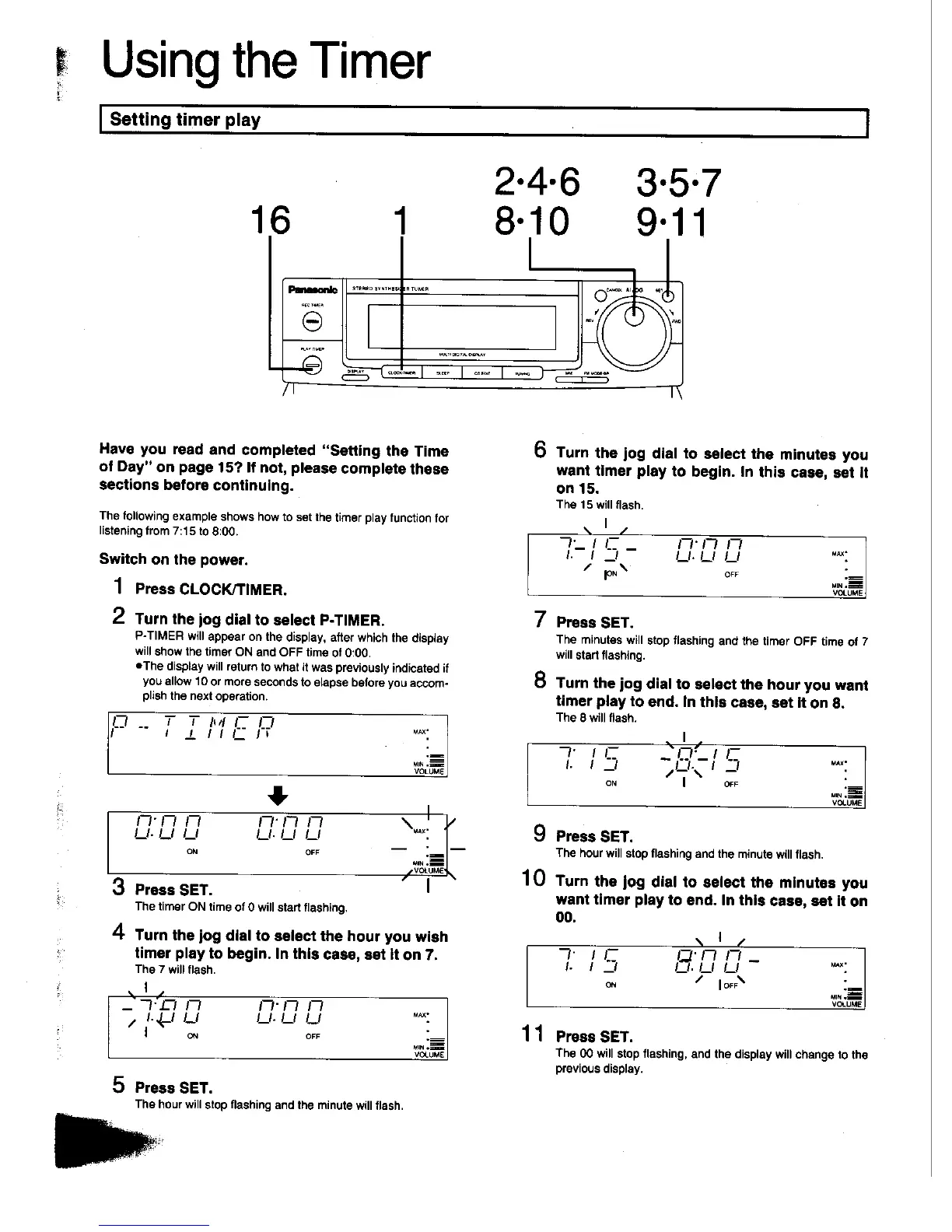 Panasonic SC-CH33 - Using the Timer; Setting timer play