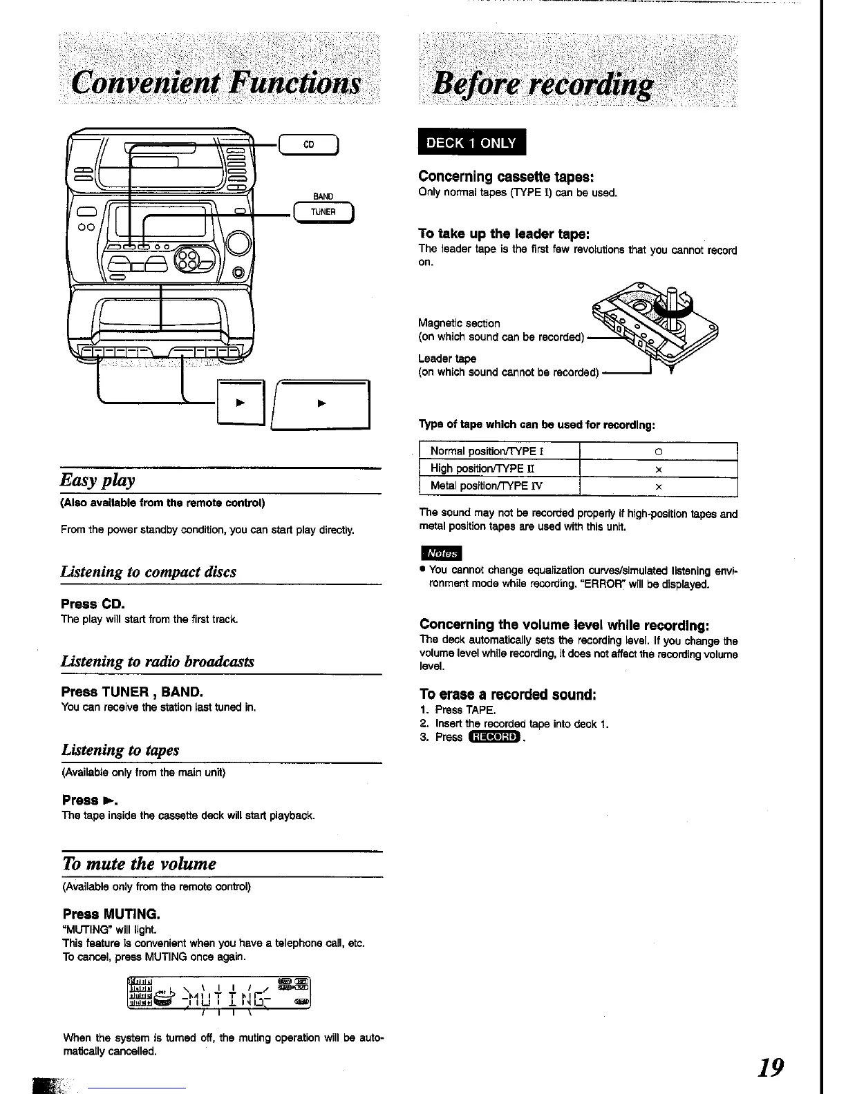 Panasonic SC-CH34 - Convenient Functions; Easy Play and Source Selection; Muting the Volume