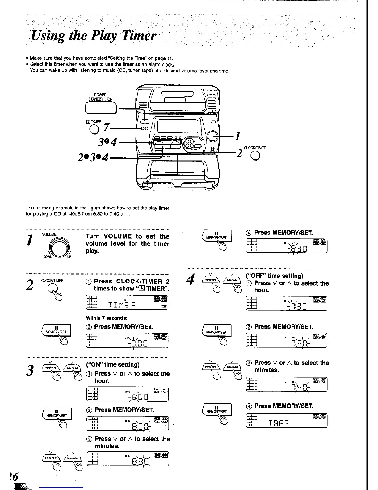 Panasonic SC-CH34 - Using the Play Timer; Setting ON and OFF Times