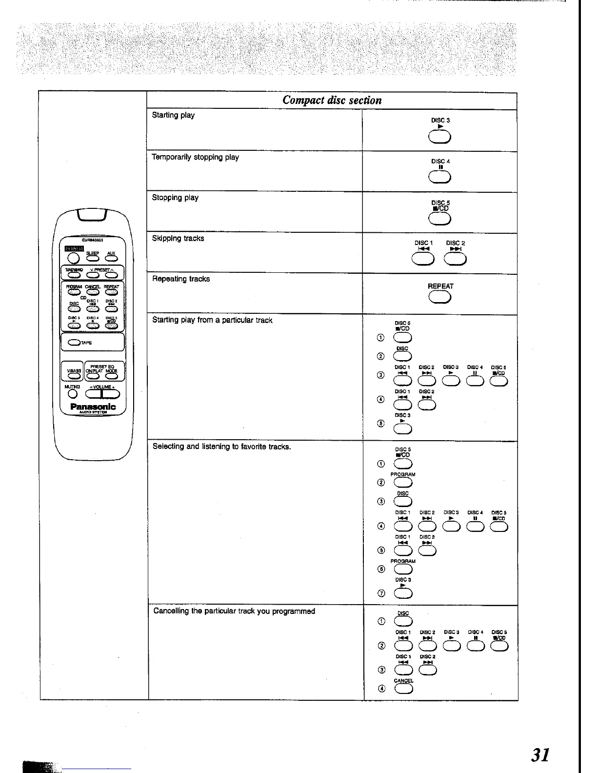Panasonic SC-CH34 - Compact Disc Section; CD Playback Controls; Track Navigation and Selection; Programmed Track Management