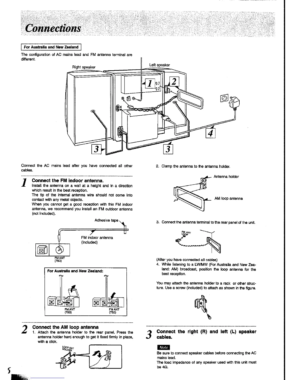Panasonic SC-CH34 - Connections; Connect the FM Indoor Antenna; Connect the AM Loop Antenna; Connect Speaker Cables