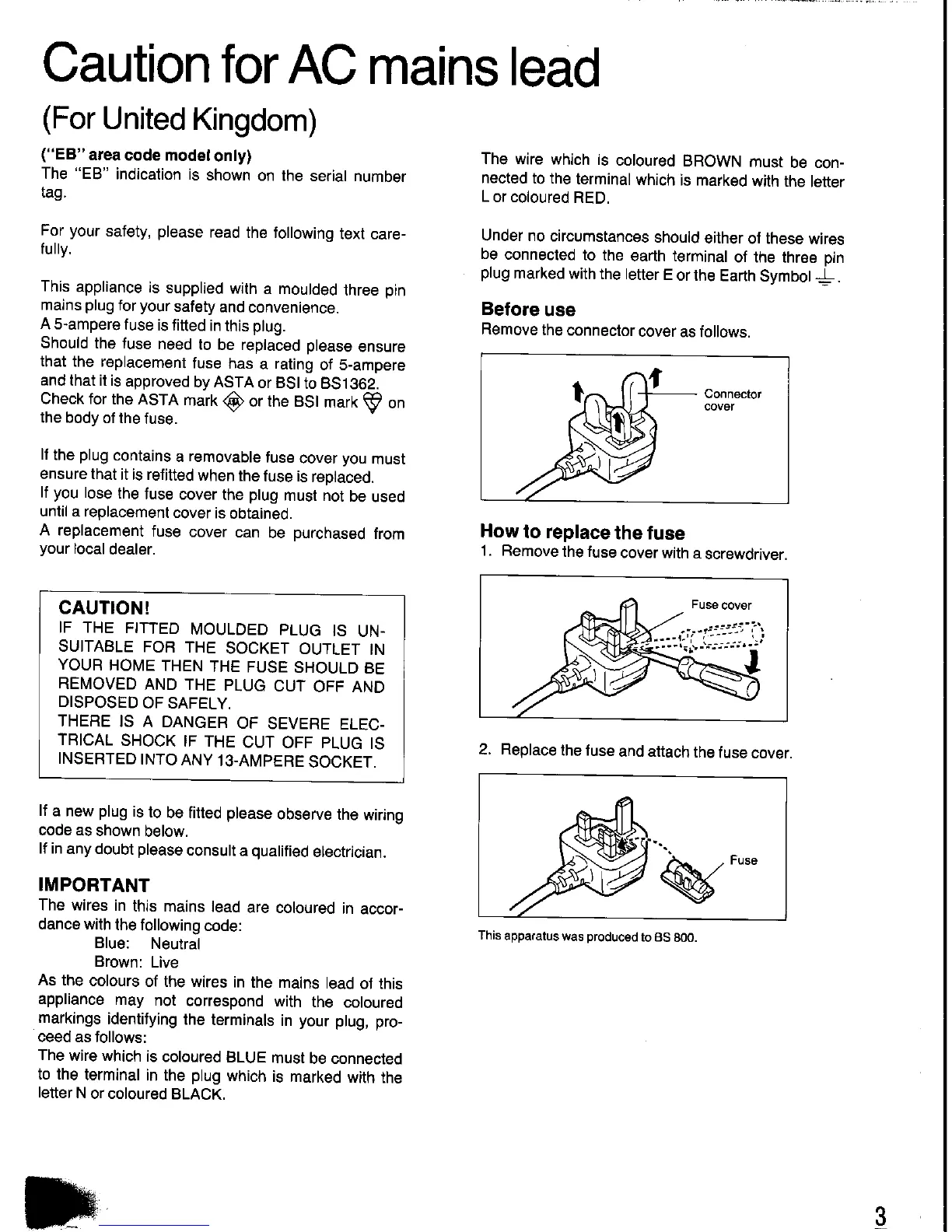 Panasonic SC-CH350 - Caution for AC mains lead; Before use; How to replace the fuse