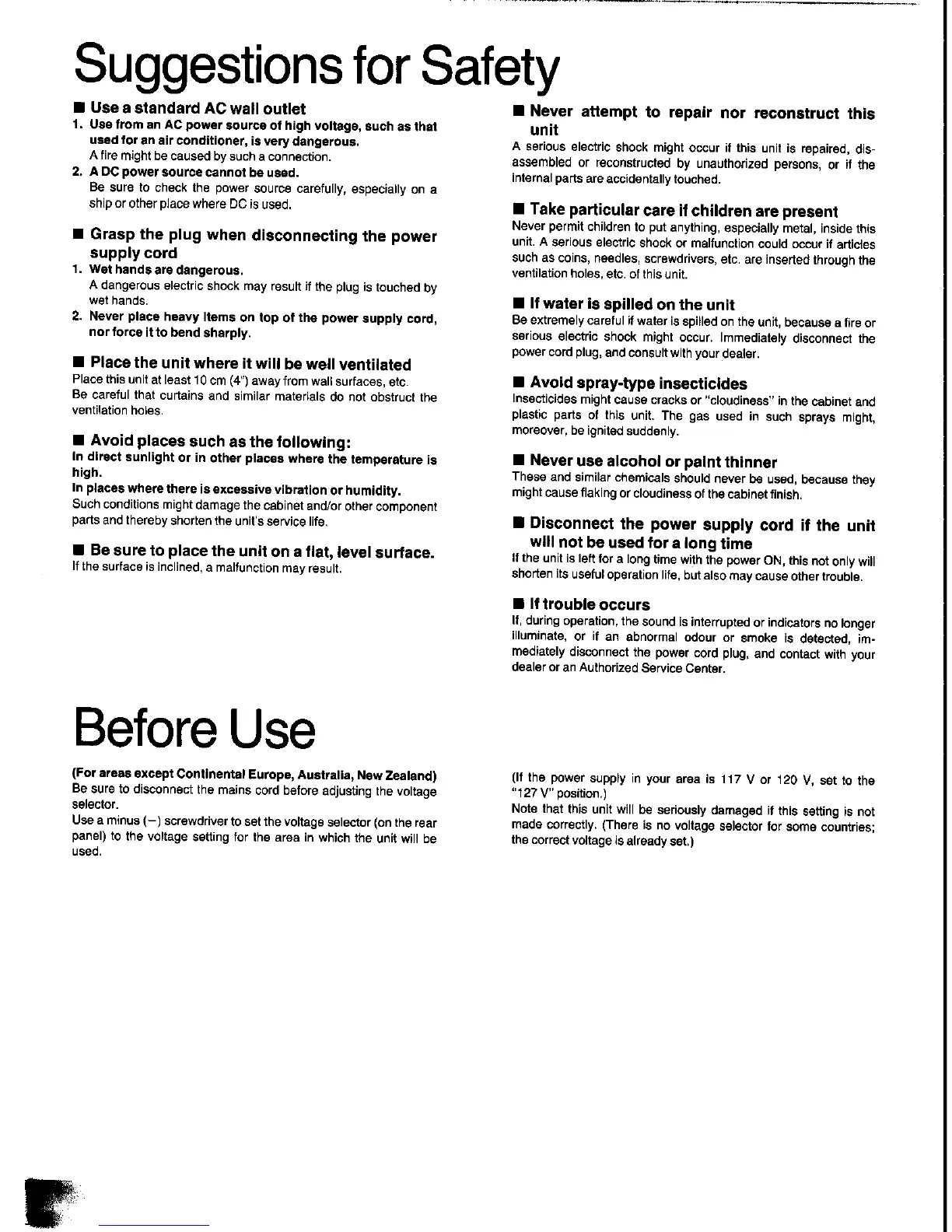 Panasonic SC-CH350 - Suggestions for Safety; Before Use Safety