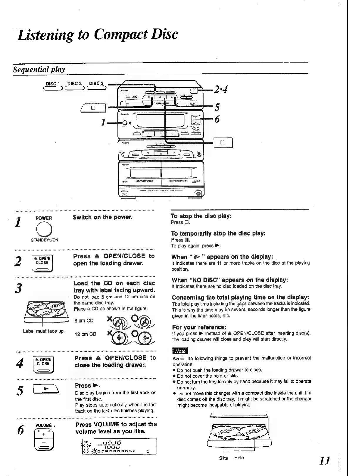 Panasonic SC-CH52 - Listening to Compact Disc - Basic Playback; Sequential CD Playback; Playback Controls and Indicators