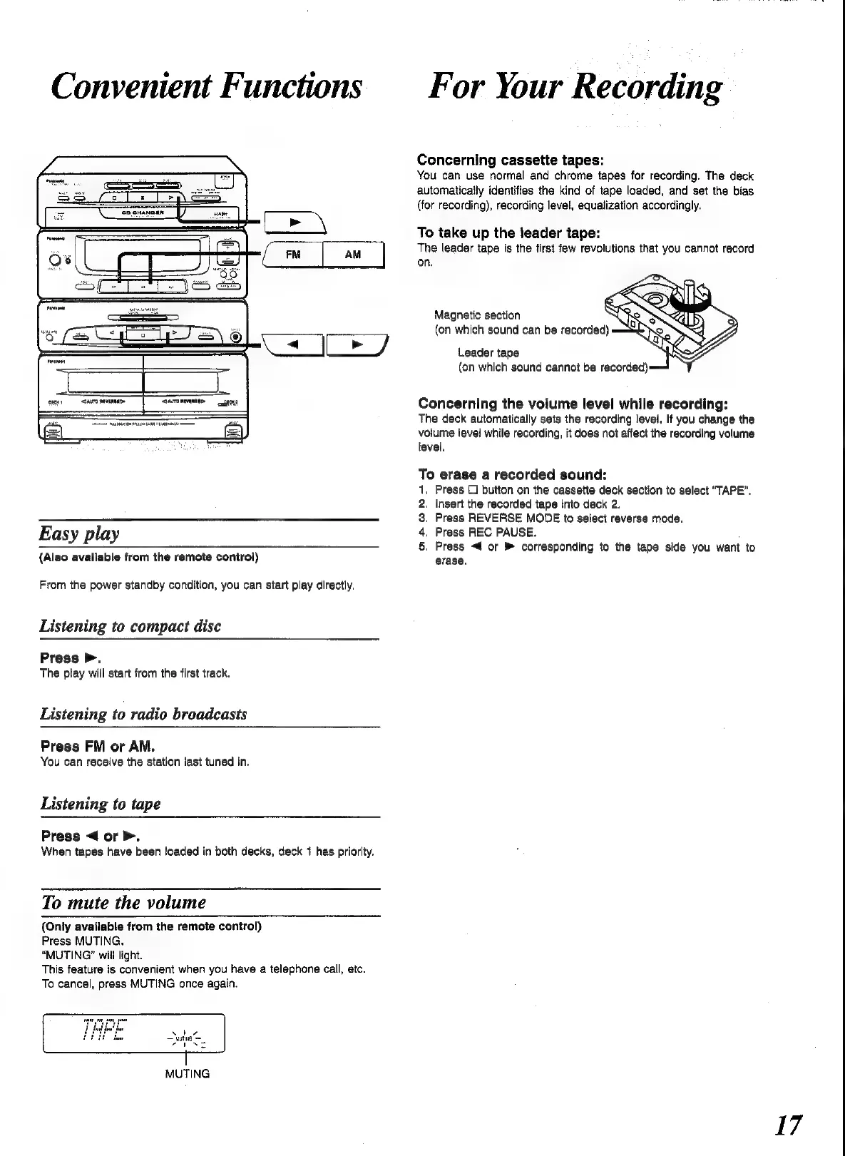 Panasonic SC-CH52 - Convenient Functions; To Mute the Volume