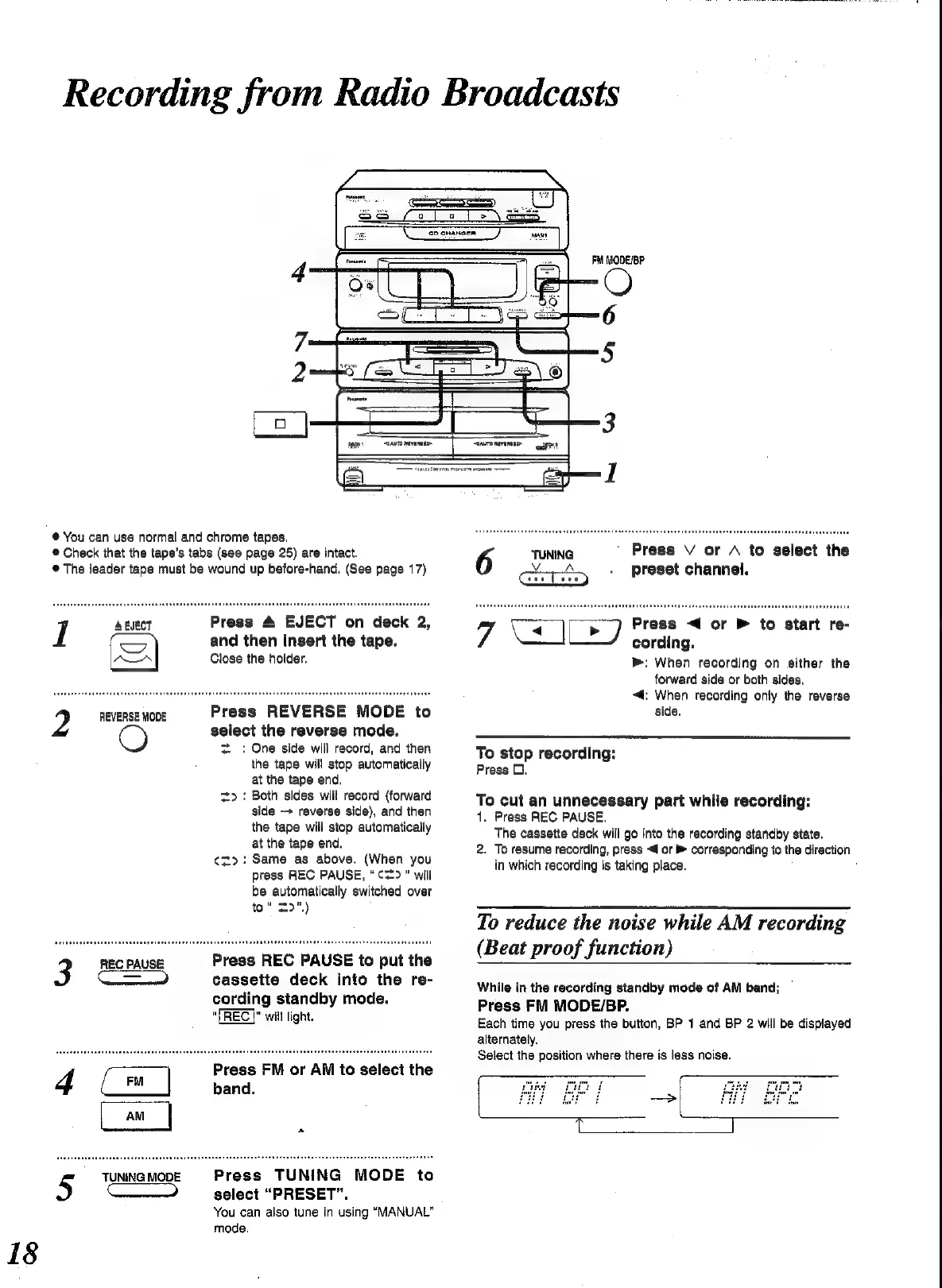 Panasonic SC-CH52 - Recording from Radio Broadcasts; Preparing for Radio Recording; Starting and Managing Radio Recording