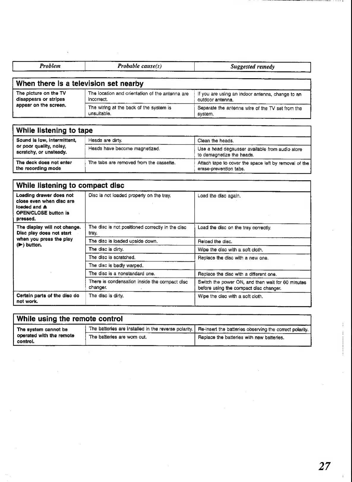 Panasonic SC-CH52 - Troubleshooting Guide - Specific Component Issues; TV Interference and Tape Playback Problems; Compact Disc and Remote Control Issues