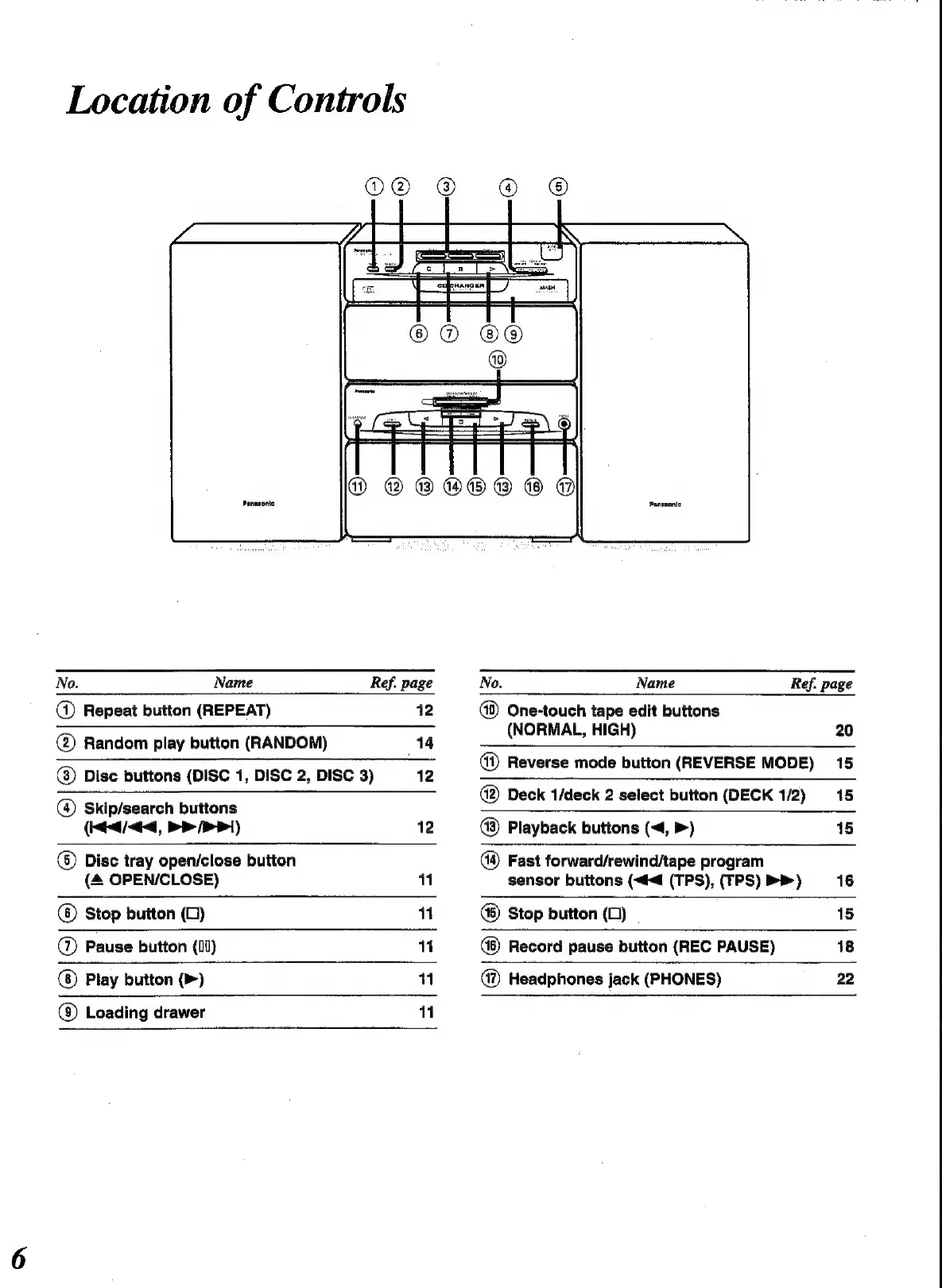 Panasonic SC-CH52 - Location of Controls Overview; Main Unit Front Panel Layout; Remote Control Transmitter Layout