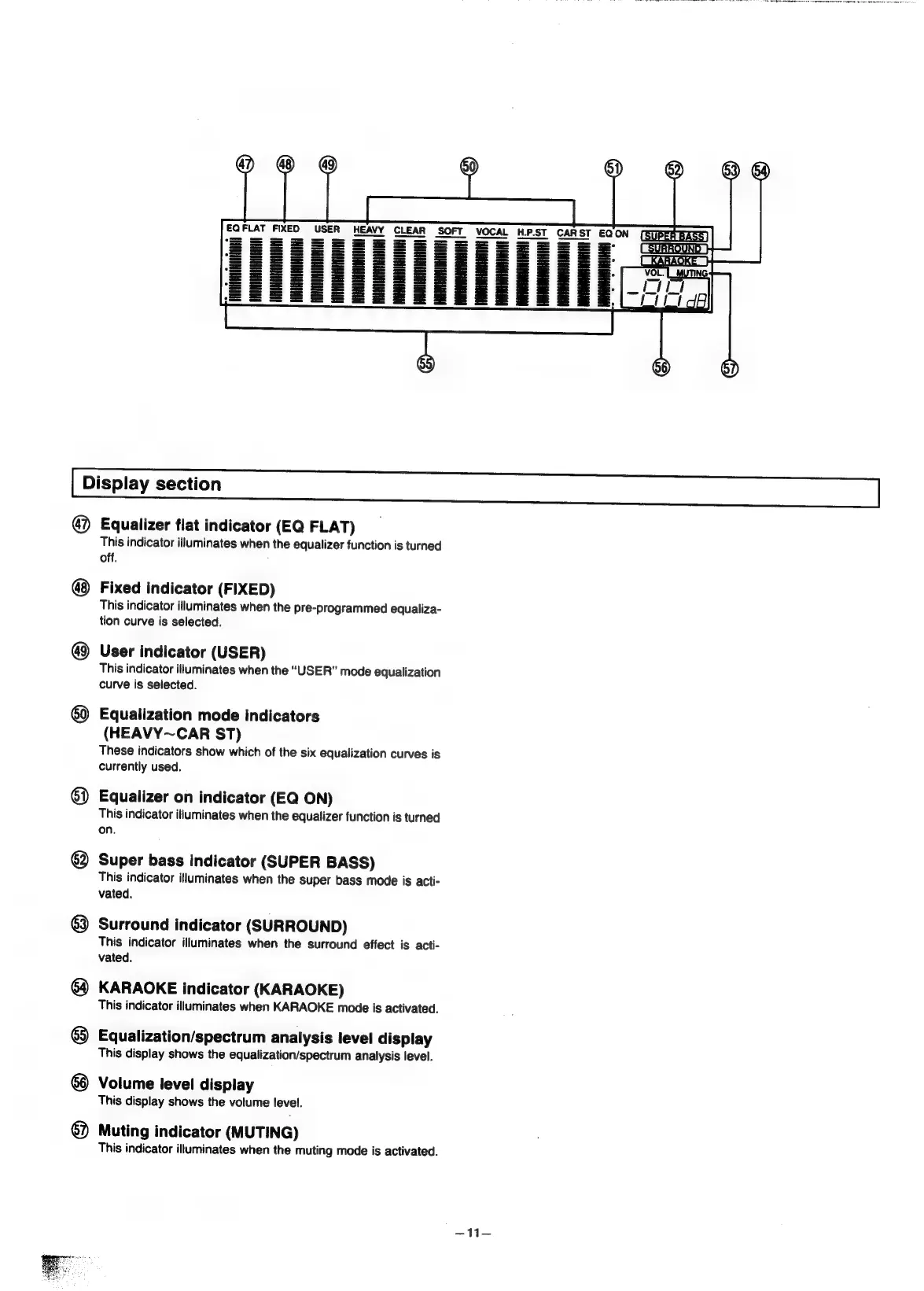 Panasonic SC-CH55 - Display section; Equalizer flat indicator (EQ FLAT); Fixed indicator (FIXED); User indicator (USER)