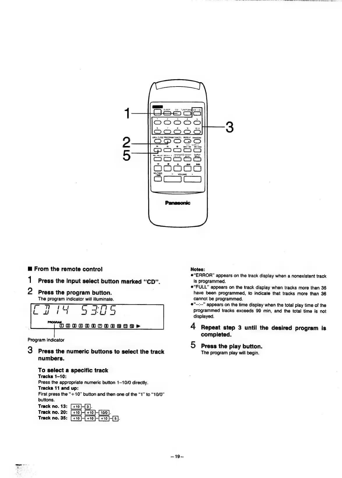 Panasonic SC-CH55 - From the remote control; Program indicator; Notes