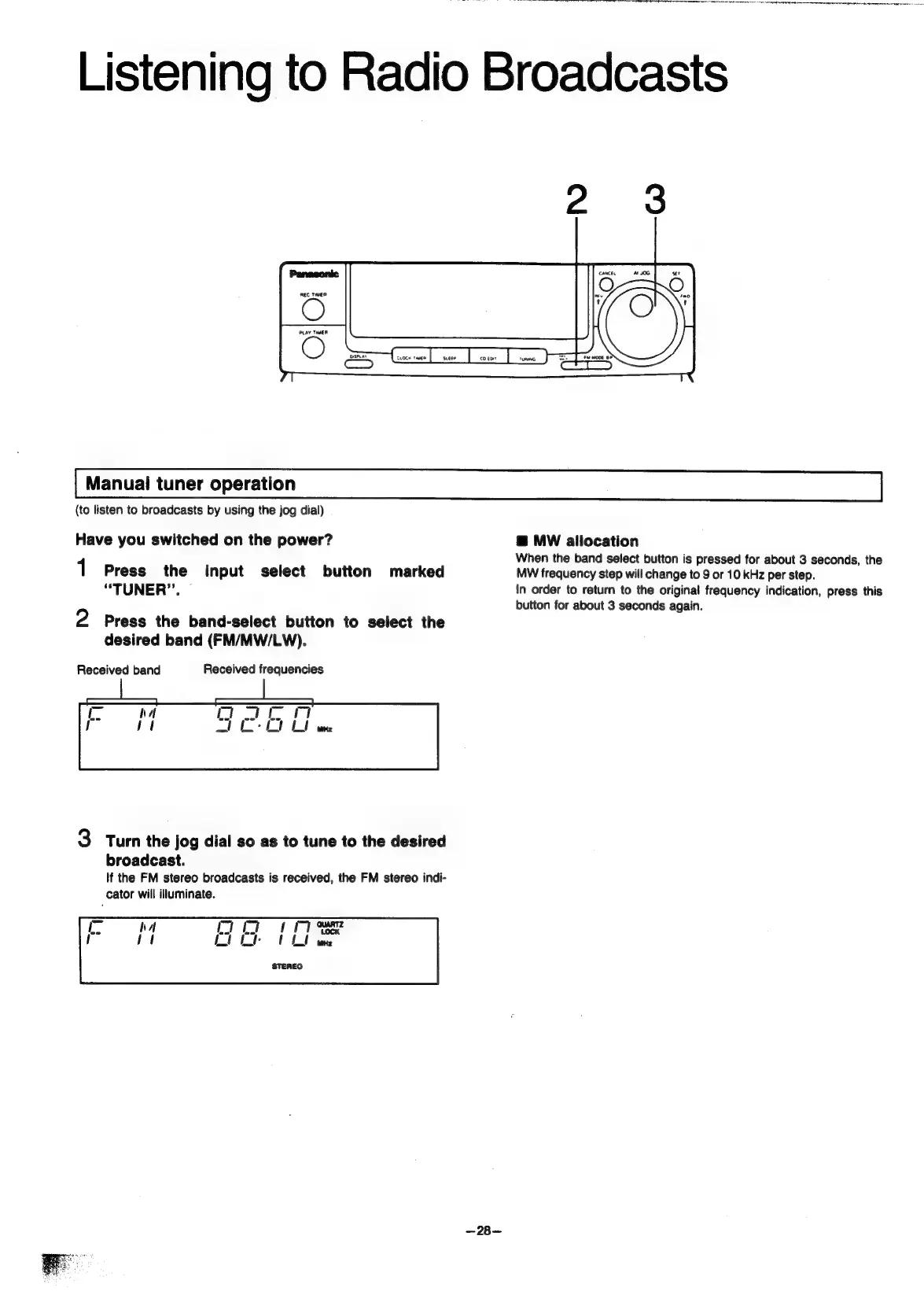Panasonic SC-CH55 - Listening to Radio Broadcasts; Manual tuner operation; MW allocation