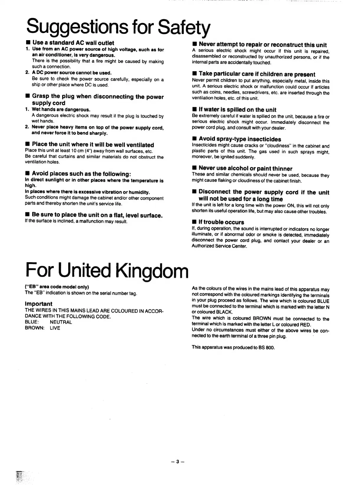 Panasonic SC-CH55 - Suggestions for Safety; For United Kingdom