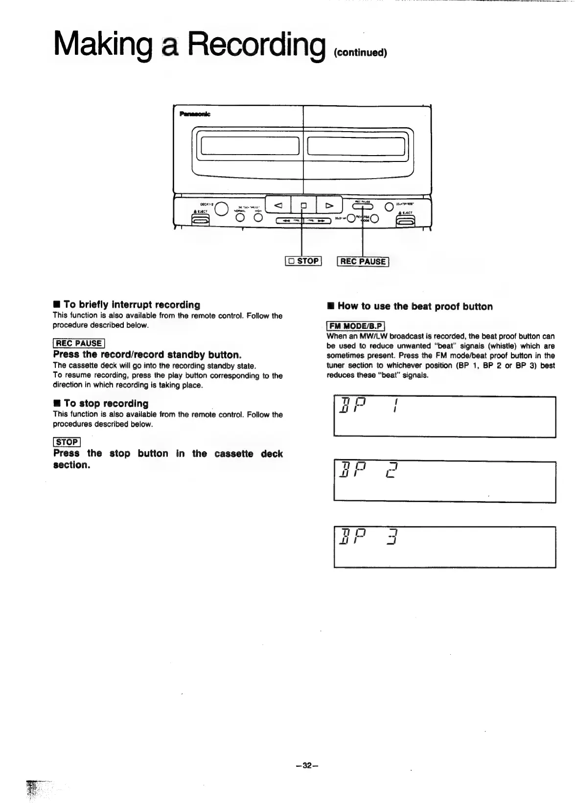 Panasonic SC-CH55 - Making a Recording (continued); To briefly interrupt recording; To stop recording; How to use the beat proof button