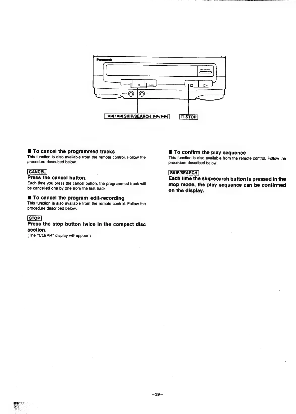 Panasonic SC-CH55 - To cancel the programmed tracks; To cancel the program edit-recording; To confirm the play sequence