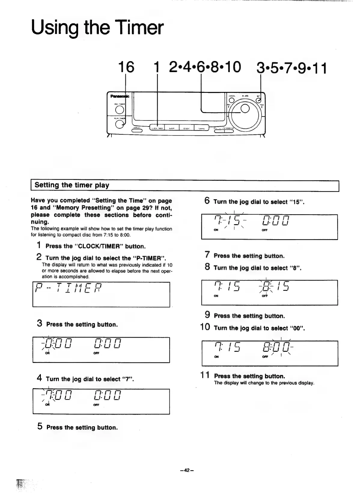 Panasonic SC-CH55 - Using the Timer; Setting the timer play
