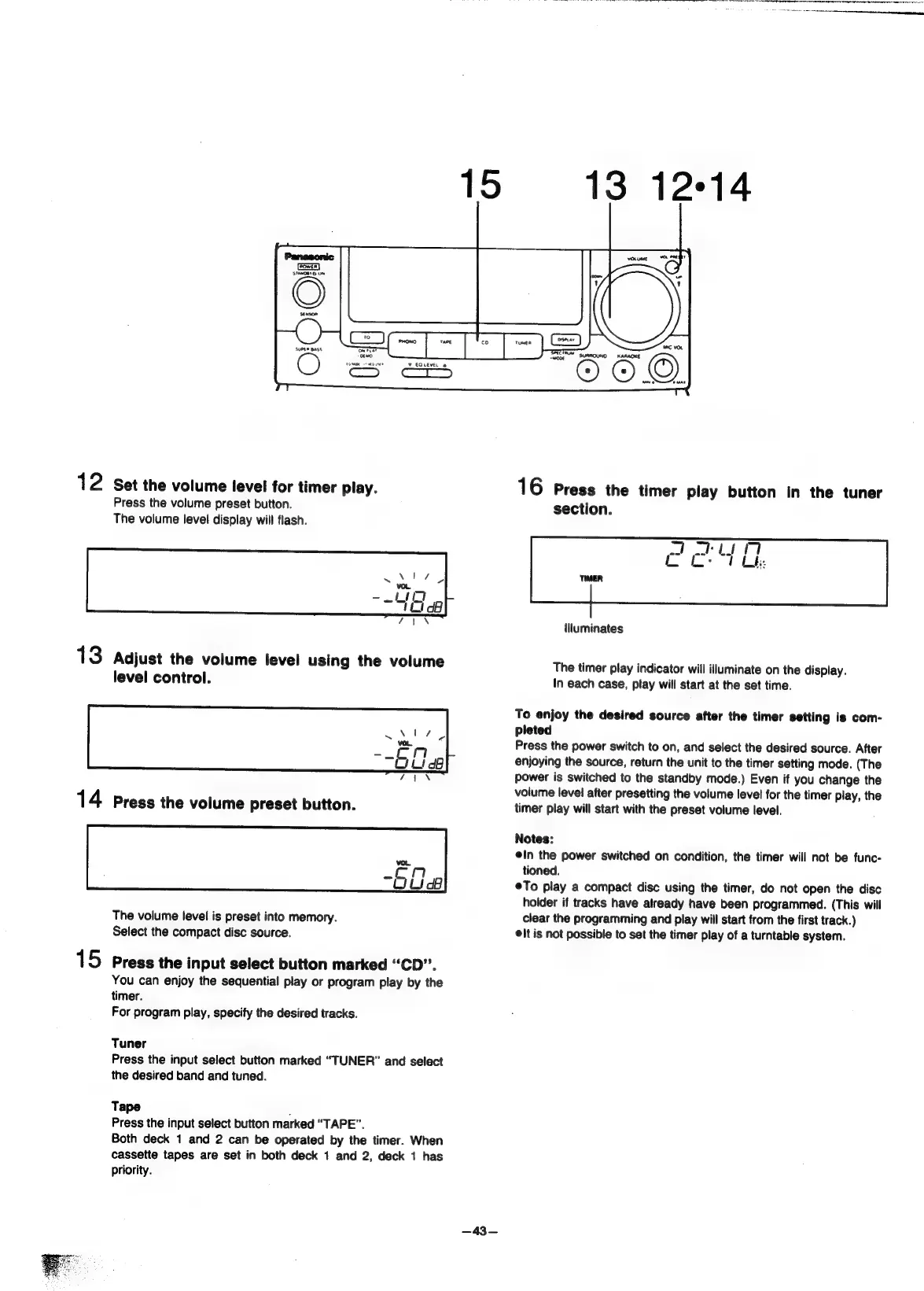 Panasonic SC-CH55 - Set the volume level for timer play.; Adjust the volume level using the volume level control.; Select the compact disc source.; Tuner