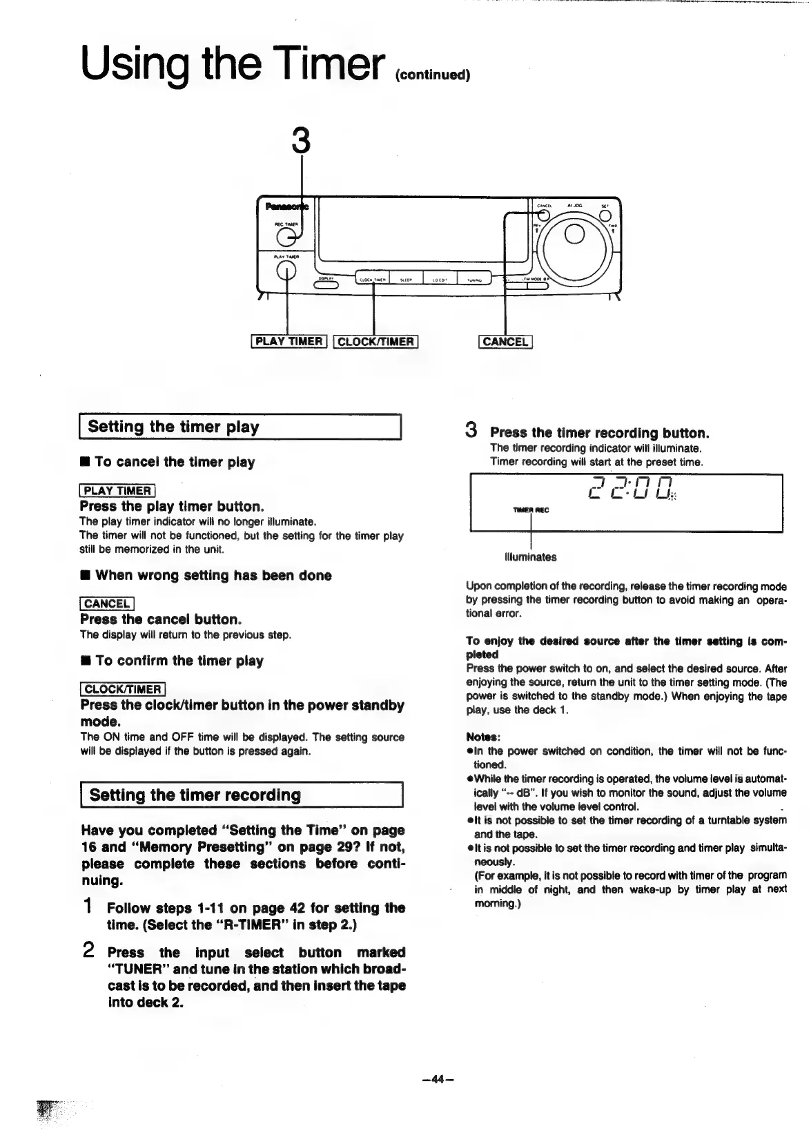 Panasonic SC-CH55 - Using the Timer (continued); Setting the timer play; Setting the timer recording