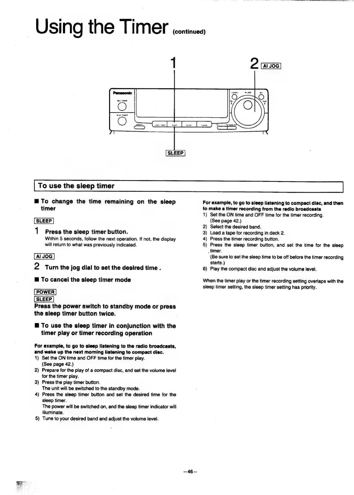 Panasonic SC-CH55 - Using the Timer (continued); To use the sleep timer; To cancel the sleep timer mode; To use the sleep timer in conjunction with the timer play or timer recording operation
