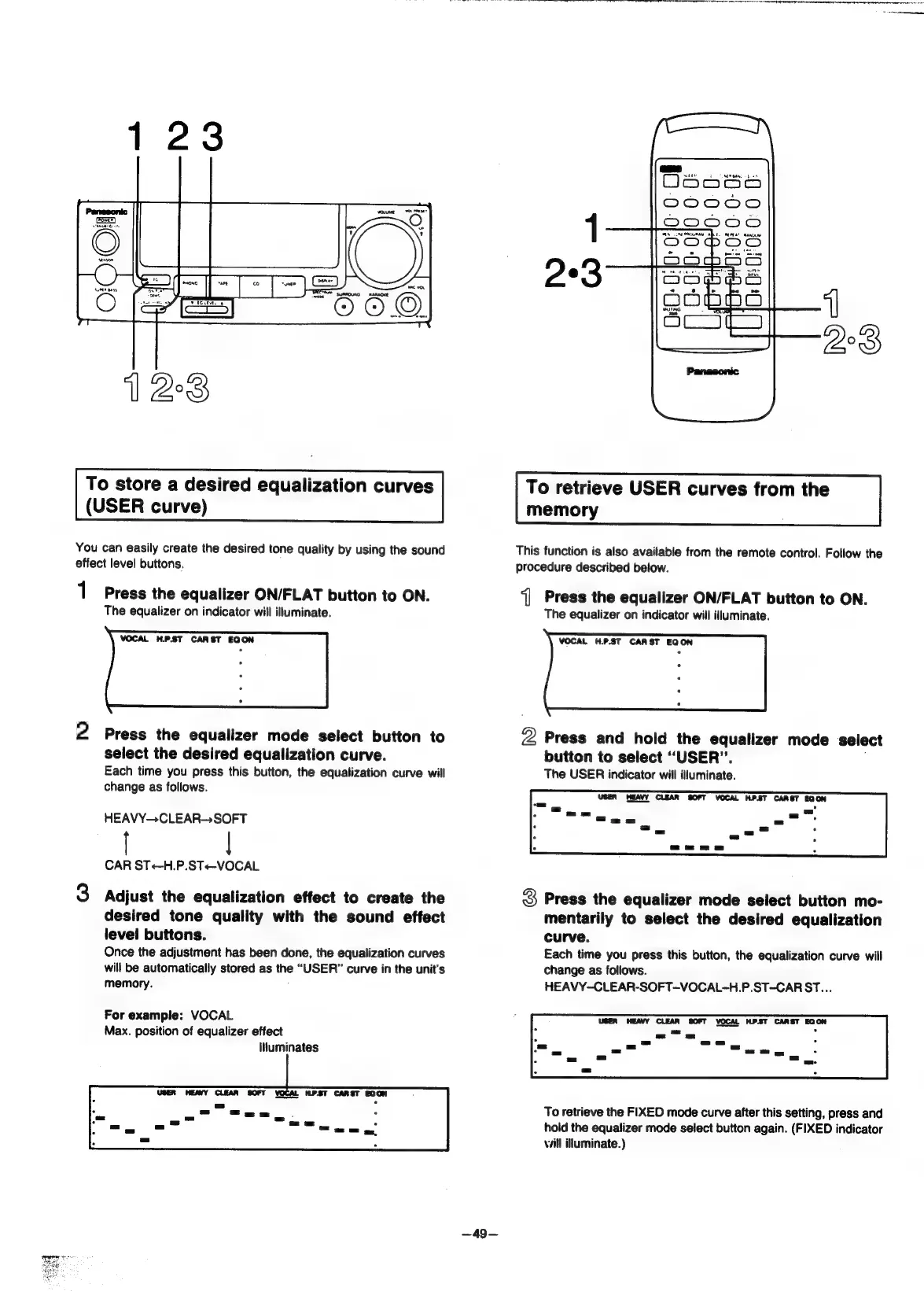 Panasonic SC-CH55 - To store a desired equalization curves (USER curve); To retrieve USER curves from the memory