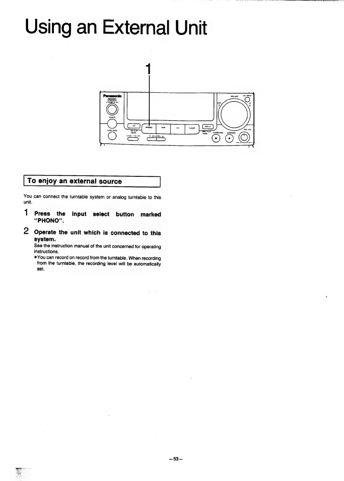 Panasonic SC-CH55 - To enjoy an external source; Using an external unit