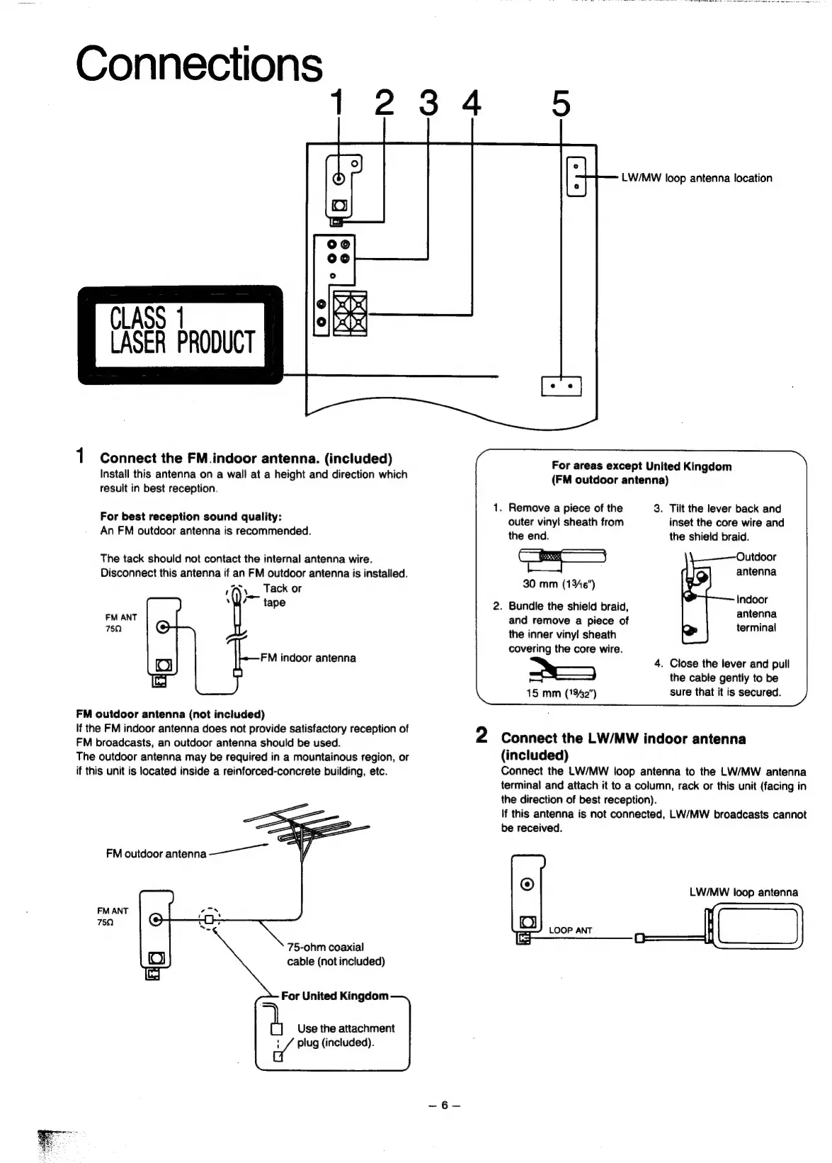 Panasonic SC-CH55 - Connections; Connect the FM indoor antenna. (included); FM outdoor antenna (not included); Connect the LW;MW indoor antenna (included)