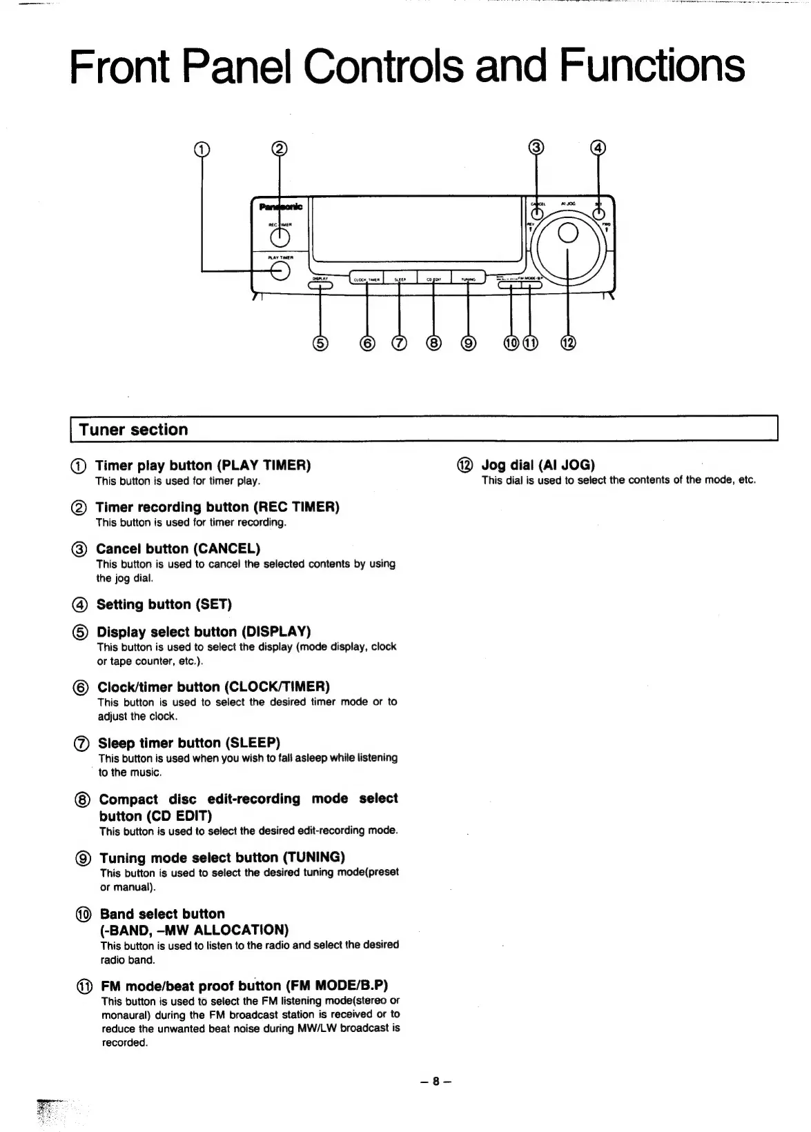 Panasonic SC-CH55 - Front Panel Controls and Functions; Tuner section