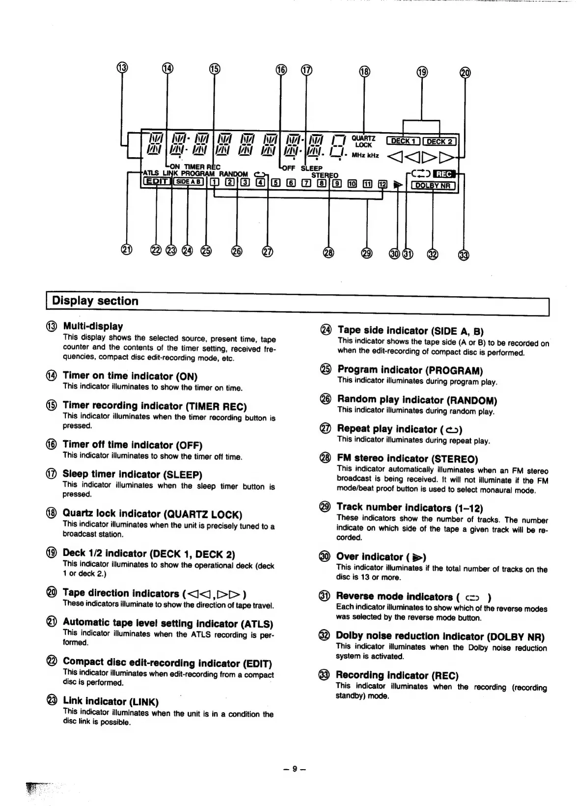 Panasonic SC-CH55 - Display section; Multi-display; Timer on time indicator (ON); Timer recording indicator (TIMER REC)