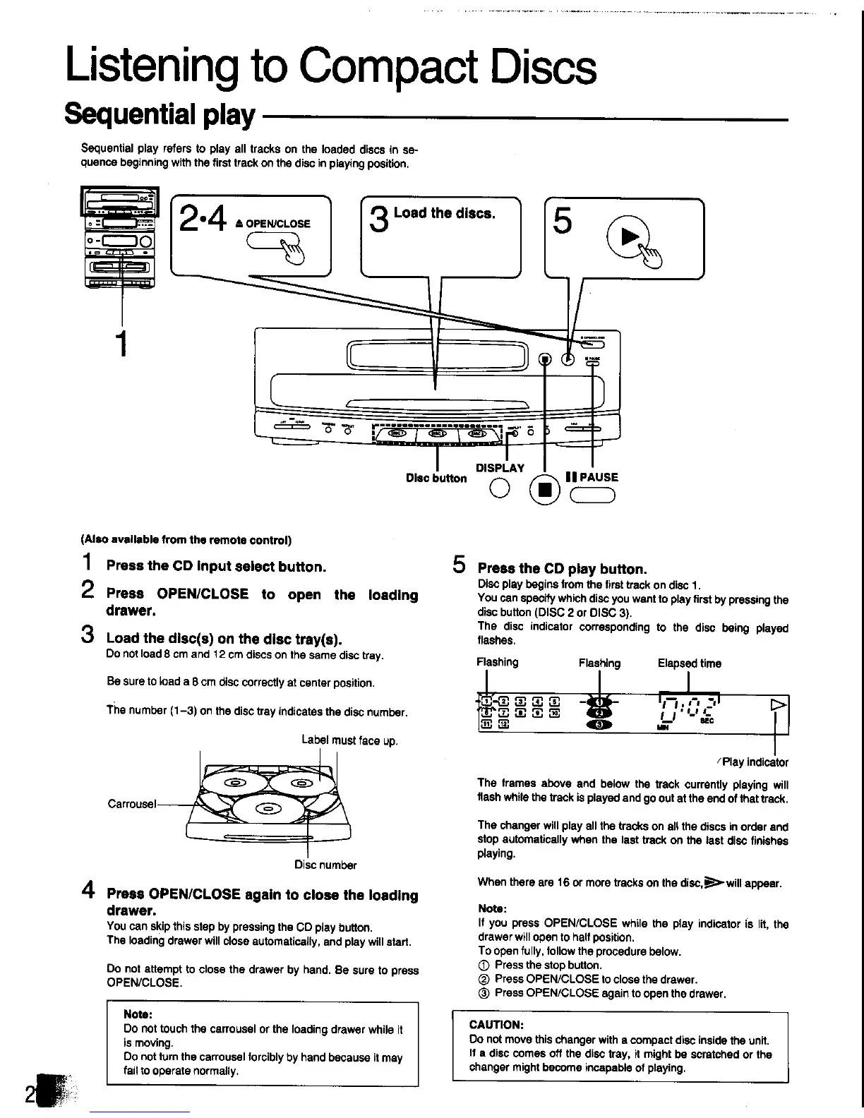 Panasonic SC-CH60 - Listening to Compact Discs; Sequential Disc Playback