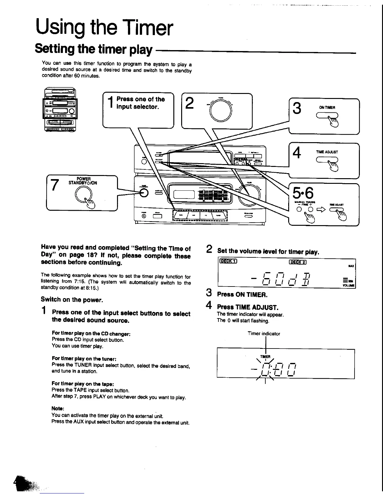 Panasonic SC-CH60 - Using the Timer; Setting Timer Play