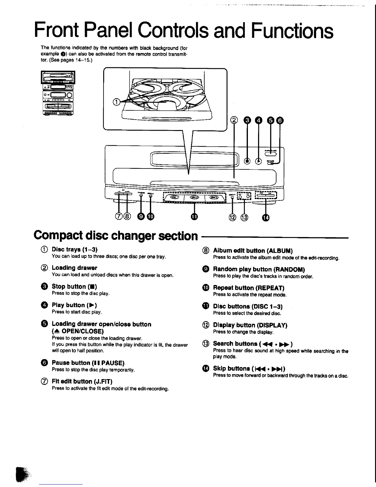 Panasonic SC-CH60 - Front Panel Controls and Functions; Compact Disc Changer Controls