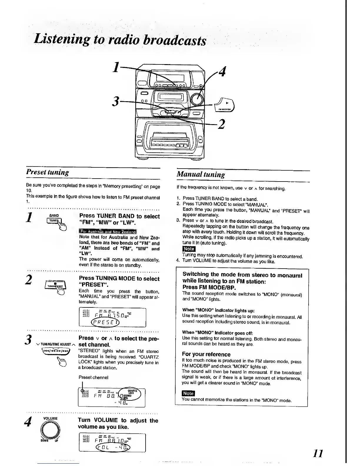 Panasonic SC-CH64M - Listening to Radio Broadcasts; Preset and Manual Tuning Methods