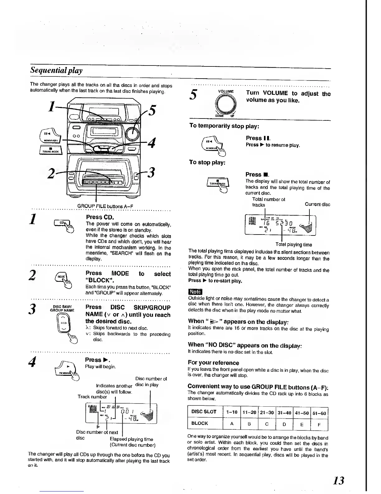Panasonic SC-CH64M - Sequential CD Playback; Playback Operation and Controls