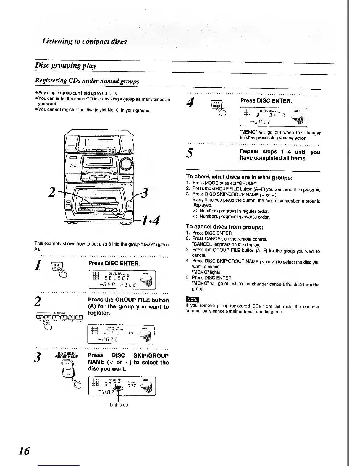 Panasonic SC-CH64M - Registering CDs in Named Groups; Checking and Cancelling Grouped CDs