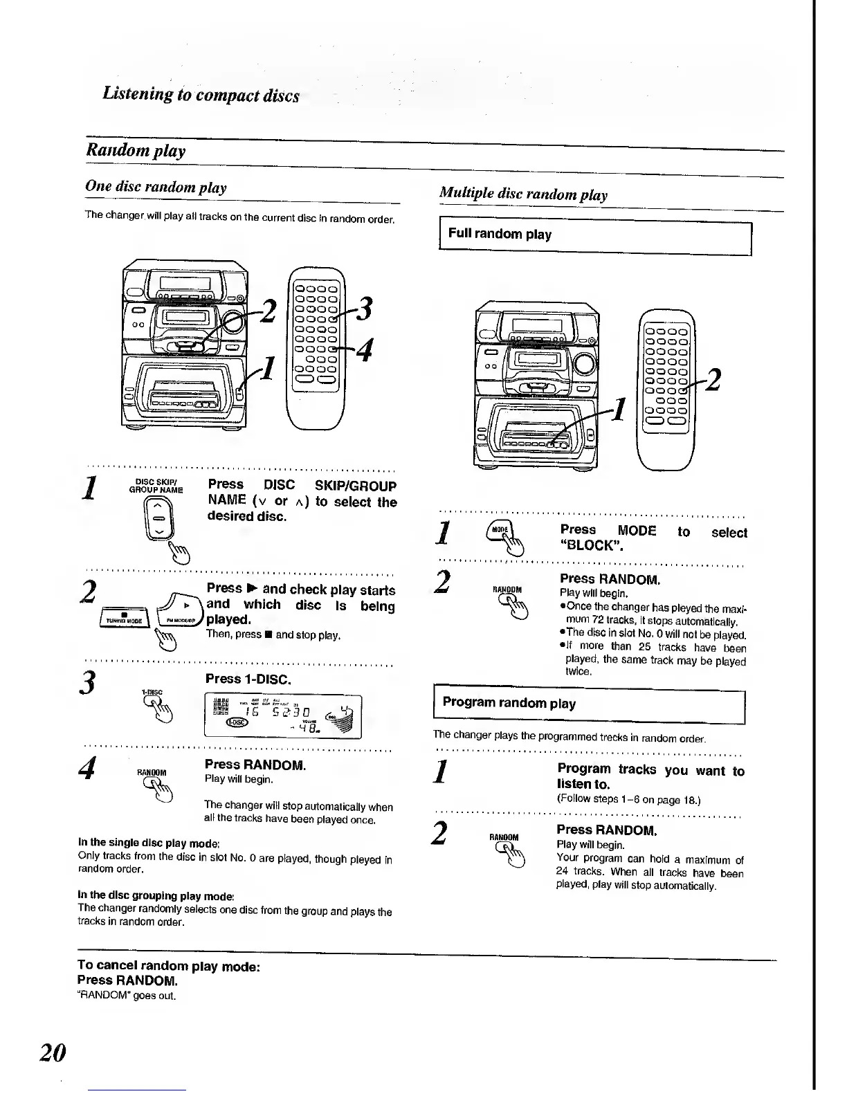 Panasonic SC-CH64M - Random Playback Modes; Single, Multiple, and Program Random Play