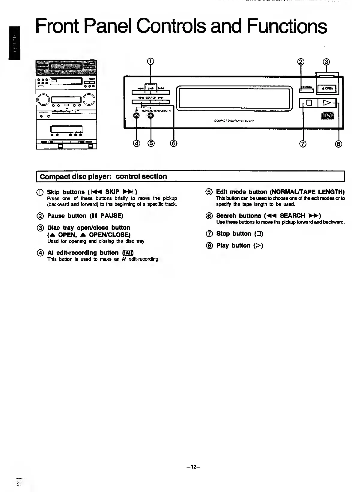 Panasonic SC-CH7 - Front Panel Controls and Functions; CD Player Controls and Display