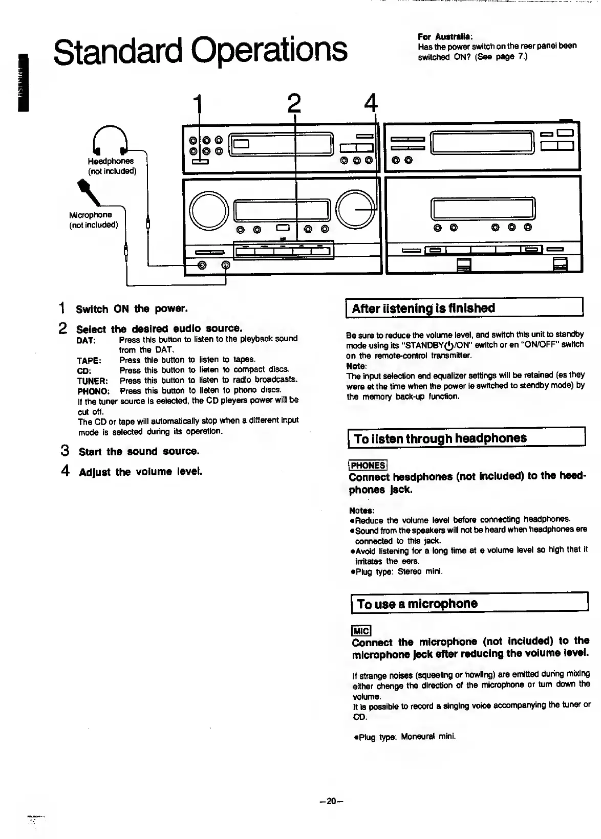Panasonic SC-CH7 - Standard Operations; Basic System Operation; Headphone and Microphone Use