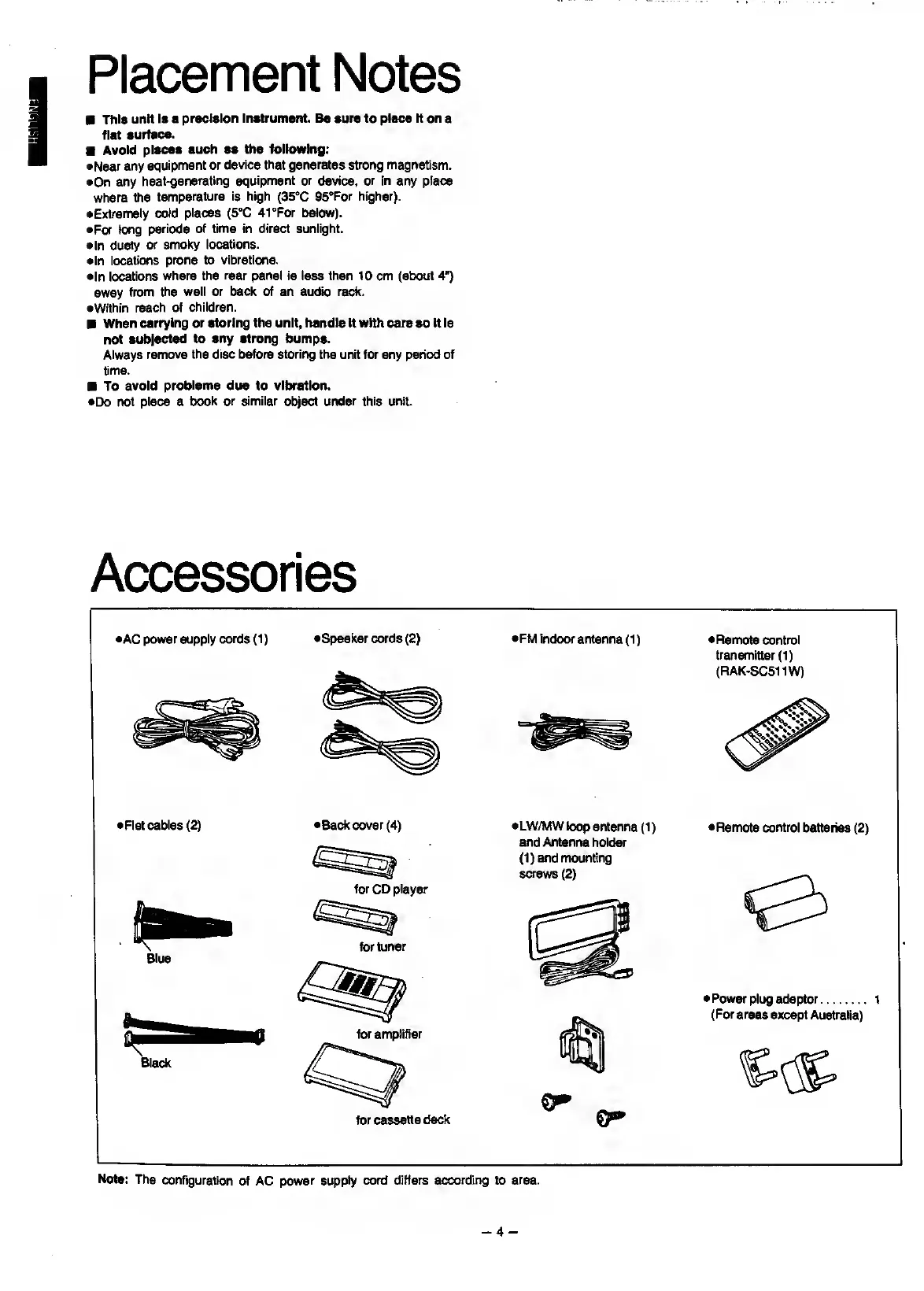 Panasonic SC-CH7 - Placement Notes; Accessories