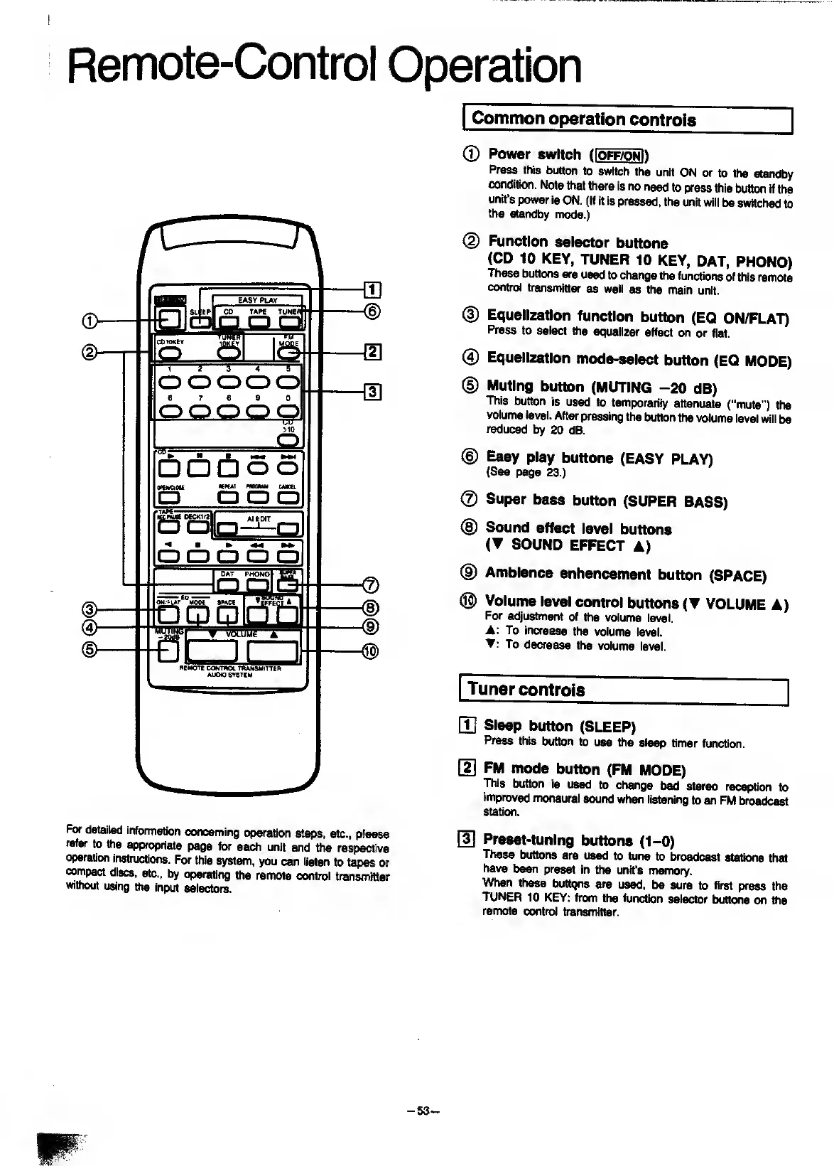 Panasonic SC-CH7 - Remote Control Operation Details; Common Operation Controls