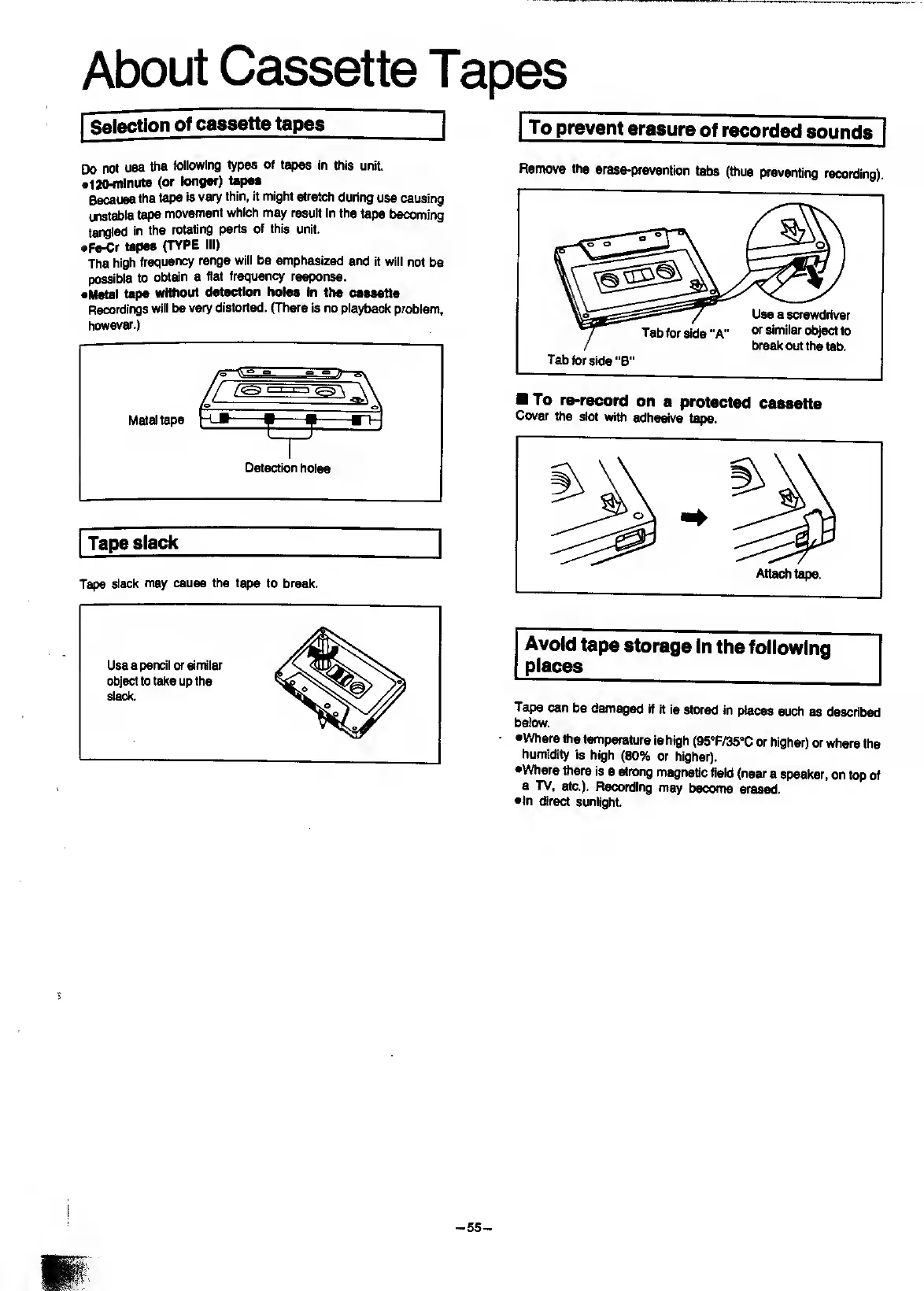 Panasonic SC-CH7 - Media Care and Handling; About Cassette Tapes