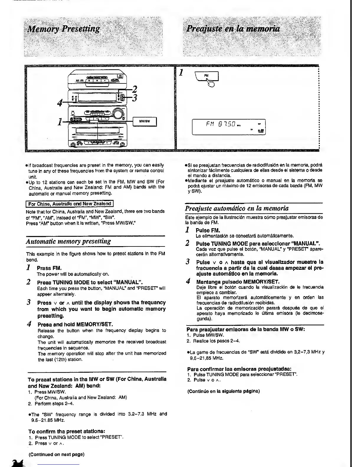 written, "Press MW/SW."