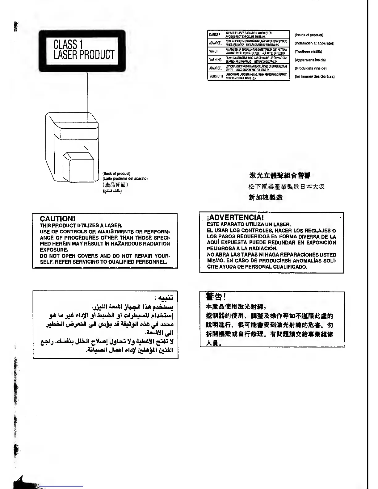 THIS PRODUCT UTIUZES A LASER.