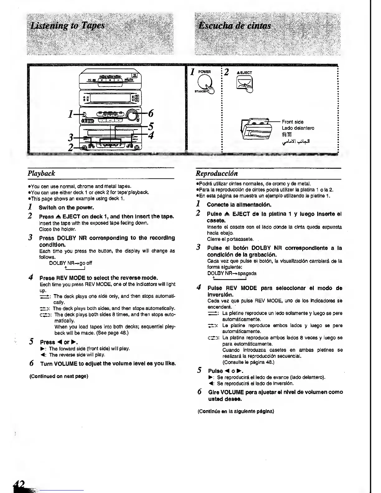 •Para la reproduccion de cintas podri utilizer la platina 1